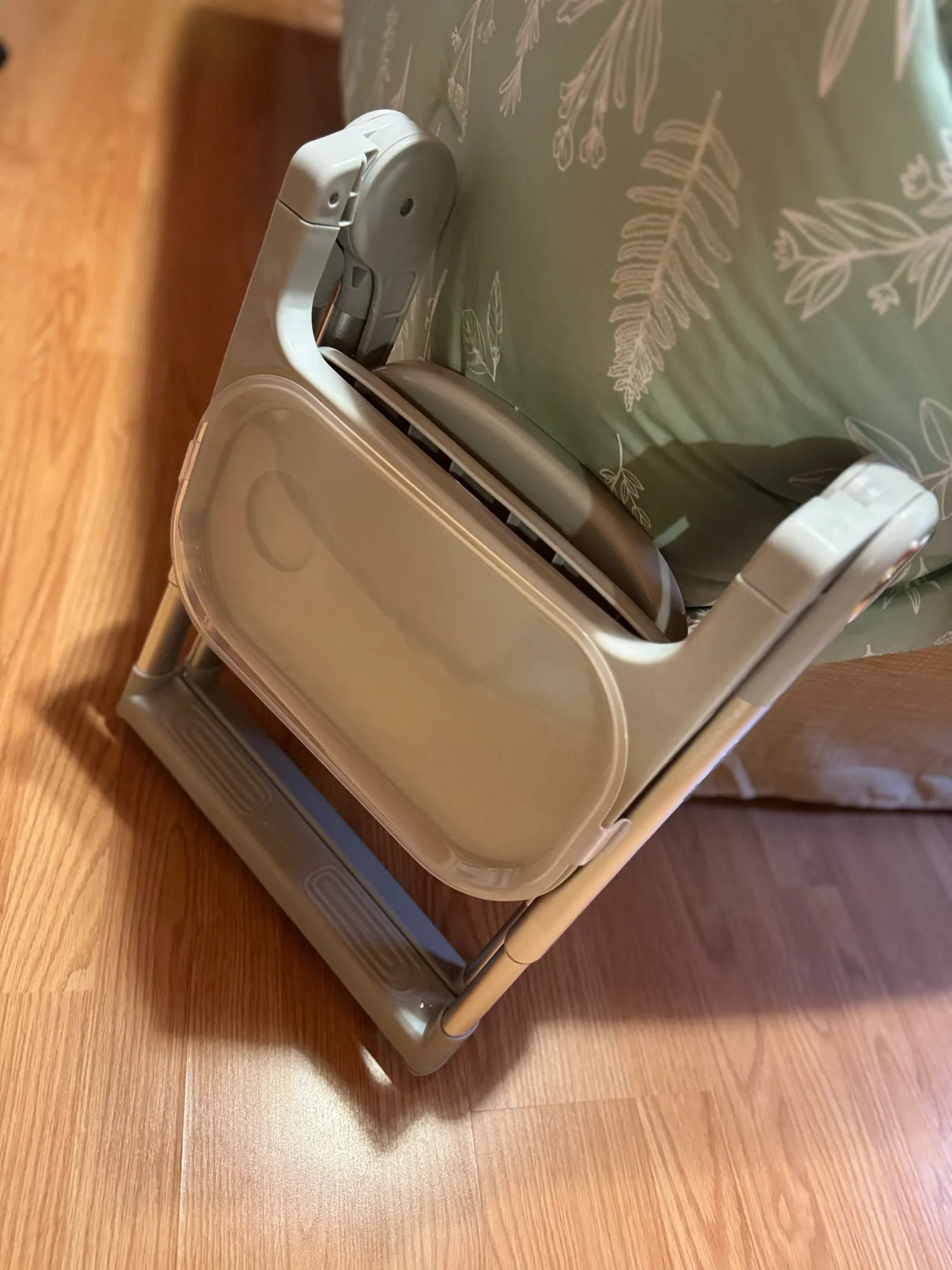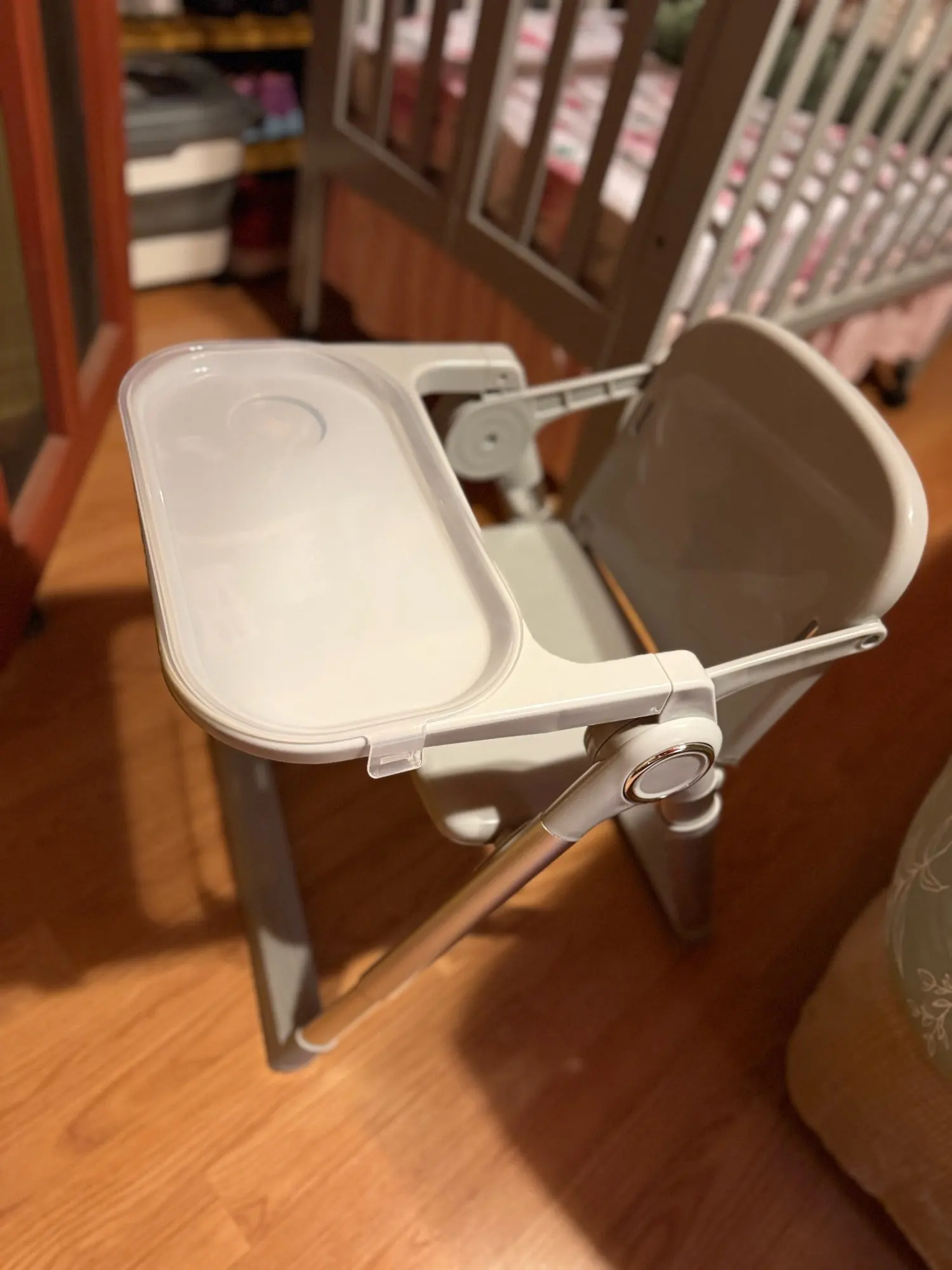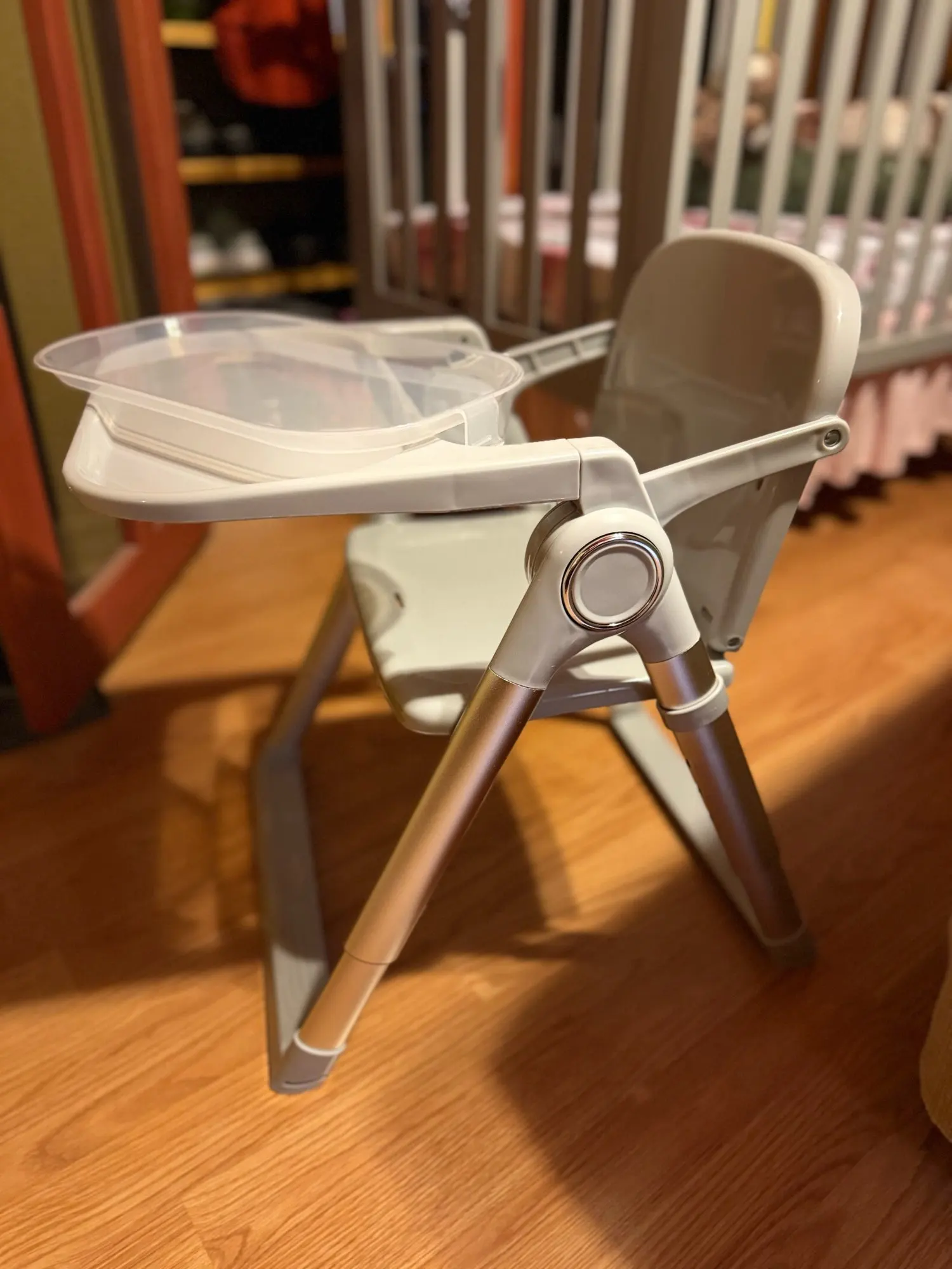 Je suis vraiment impressionné. C’est arrivé dans le délai estimé. Je pense environ six jours. Il dispose d'un double plateau pour que vous puissiez retirer le plateau supérieur et le laver facilement. Cela n’était pas inclus dans la description donc c’était une belle surprise. Il a des sangles pour le bébé et pour l'attacher à une chaise mais mes enfants sont un ogre et je les ai au lavage mais il est venu avec eux. Mon bébé était un prématuré et elle a huit mois et apprend à s'asseoir. La seule chose qui manque serait une protection coulissante rabattable. Le genre qui passe entre les jambes pour les empêcher de glisser. Les sangles fonctionnent bien mais j'ai l'impression qu'un petit enfant pourrait se dégager et finir par se retrouver au sol. J'ai le mien aussi serré que possible et cela me rend toujours un peu nerveux. Dans l'ensemble, je le recommande.
